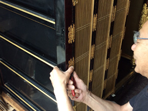 - この「悪い箇所を直す」という作業をしないと、せっかく新しい「塗り」や「金箔」を施し、外面は素晴らしく綺麗になっても、 内面がガタガタでは「修復・洗濯」をした意味がないのです。