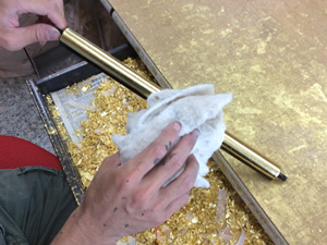 - ふき取りすぎると金箔がツヤツヤ、テカテカになってしまい、なごや仏壇の時色である「ツヤをおさえた」仕上がりではなくなってしまうのです。