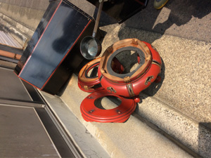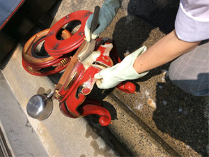 - 苛性ソーダ等の薬品を用い、長年の油分、スス、汚れを洗い流します。