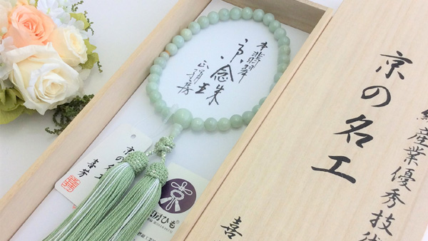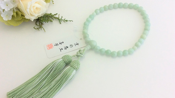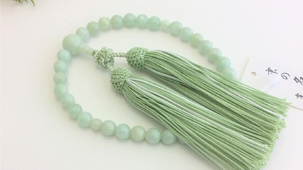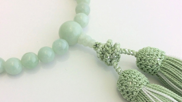 こちらの商品は、緑の色味がとても優しげで、大変上品な印象のお念珠です。