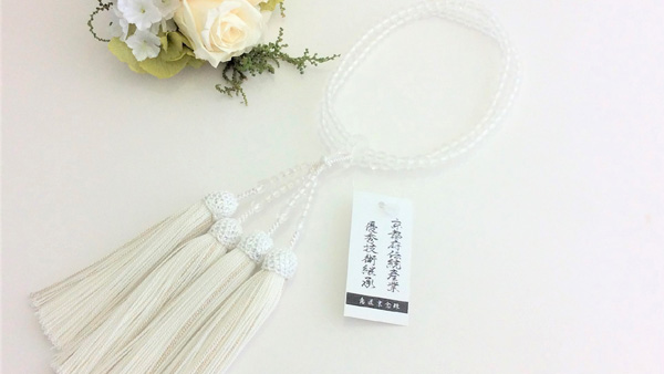 八宗用本式念珠(本水晶 雫切子 正絹房)