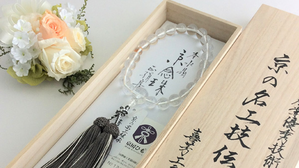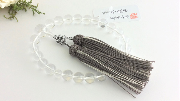艶、透明度が非常に美しい上質の本水晶を使用した、男性用の本水晶念珠です。